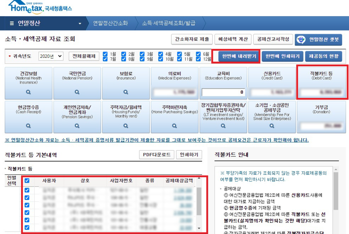 2. 소득, 세액 공제 자료 전체 월 체크하고 한 번에 내려받기 하기